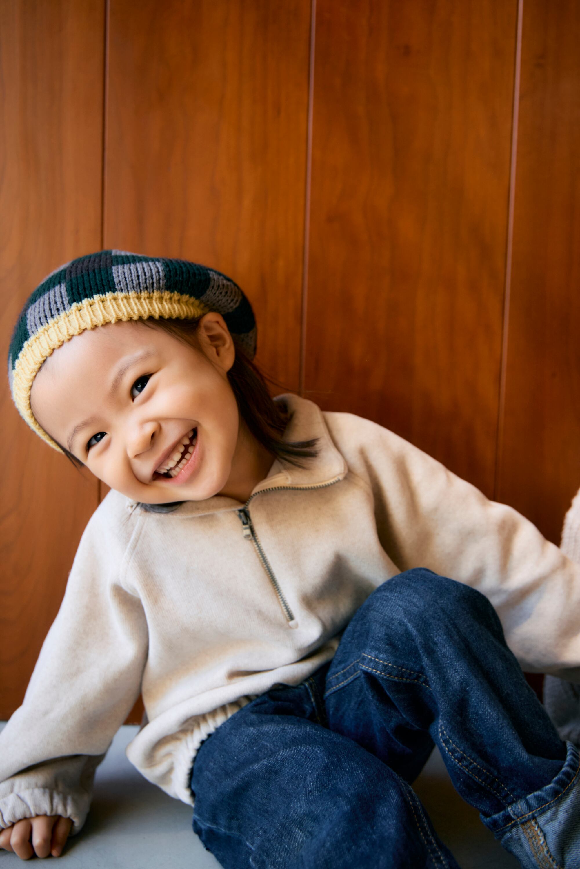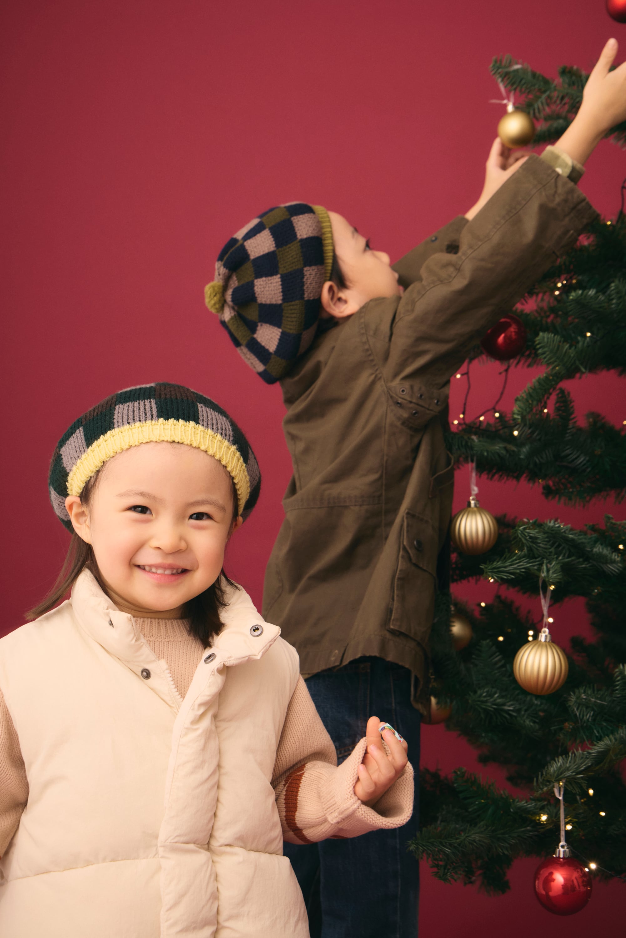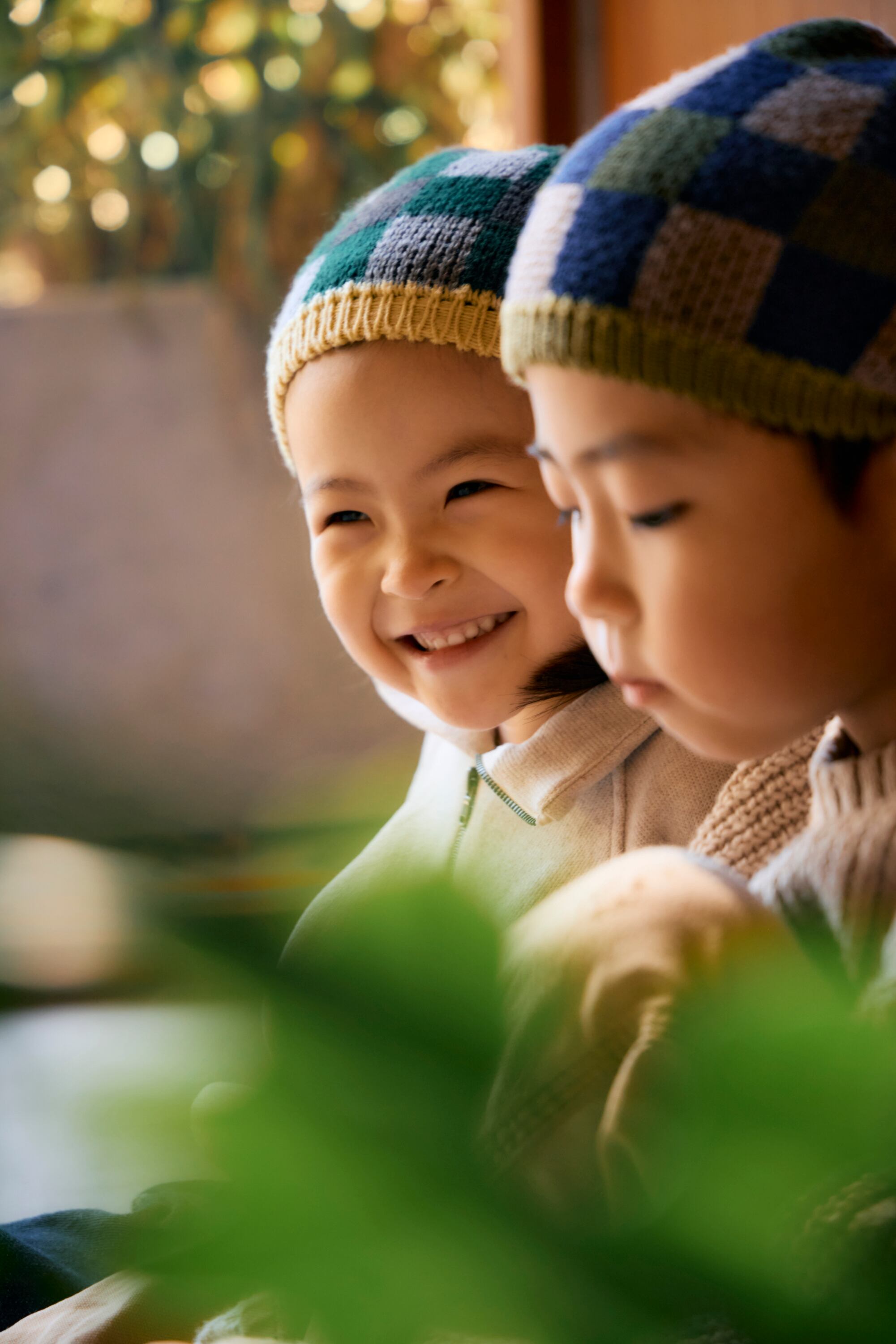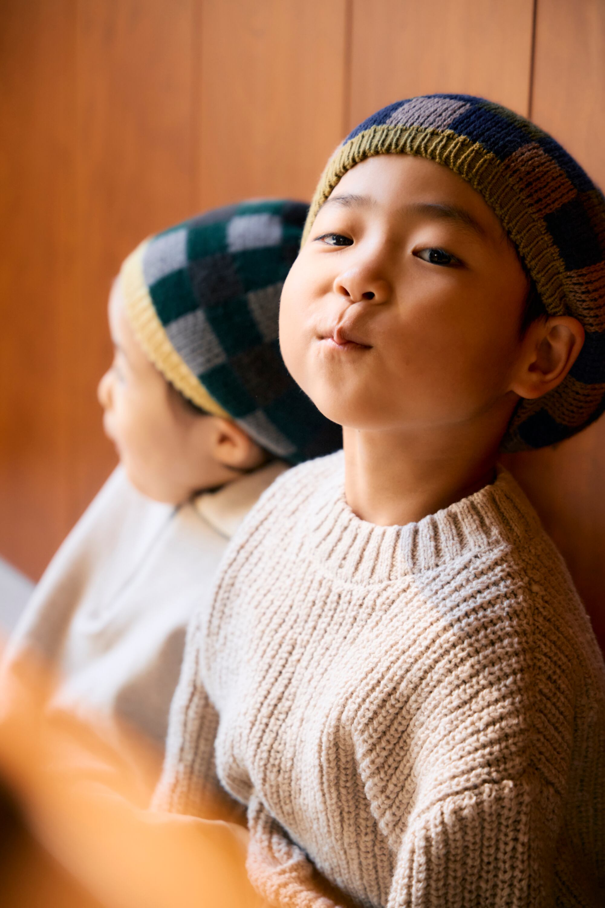 カラーはあえて渋めな色の組み合わせにしましたが、被り口やポンポンの色味で可愛さをプラスしました。